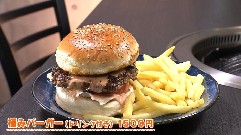 焼肉がメインのお店ですが、今回紹介するのはランチで食べられる「極みバーガー(ドリンク付き・1500円)」です。