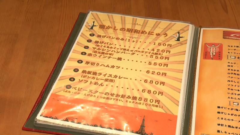 メニュー表には「懐かしの昭和めにゅう」というページがあり、人気の給食メニューが並びます。
