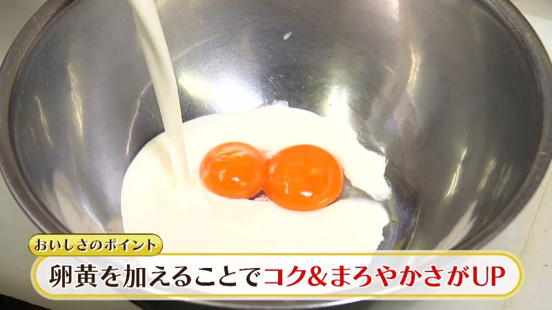 隠し味として卵黄を加えることで、ベシャメルソースにまろやかさが増し、よりなめらかな舌触りを実現しています。