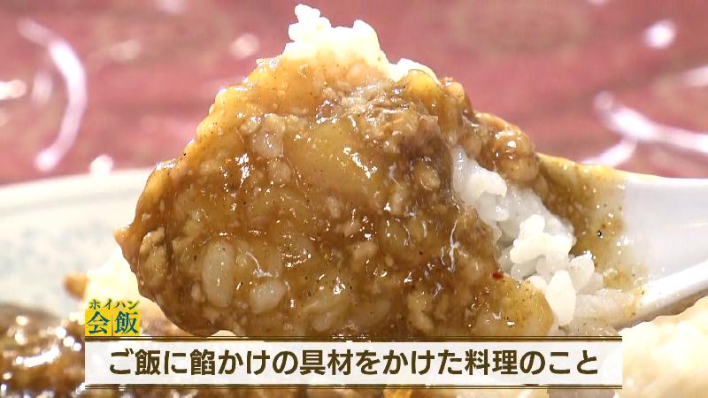 会飯とは、ご飯の上にあんかけの具材をかけた料理のことだそうです。