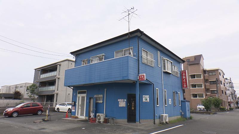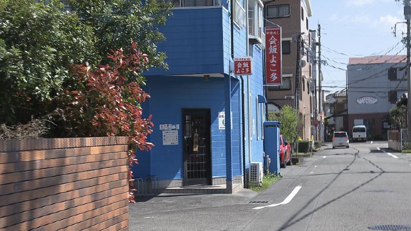藤枝駅から南へ約200m。田沼街道を歩き、駅南公園のすぐ近くで見つけたのは、青い外観に赤い看板が目を引く「会飯よこ多」です。
