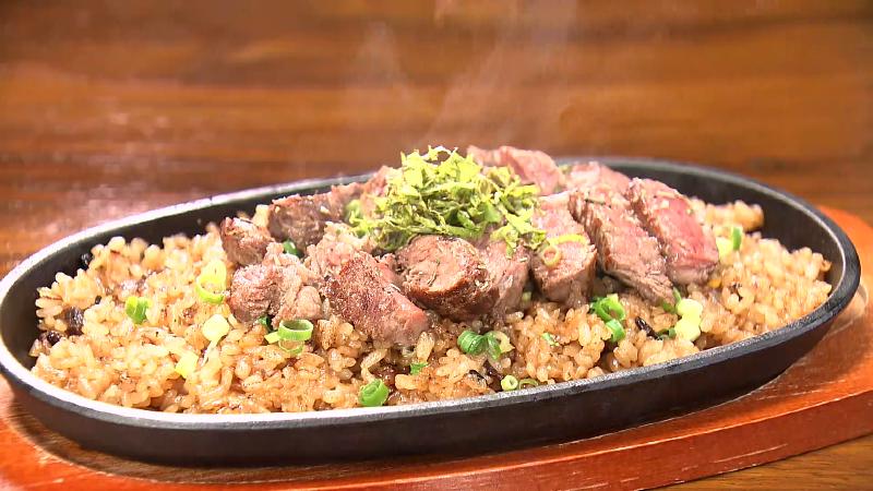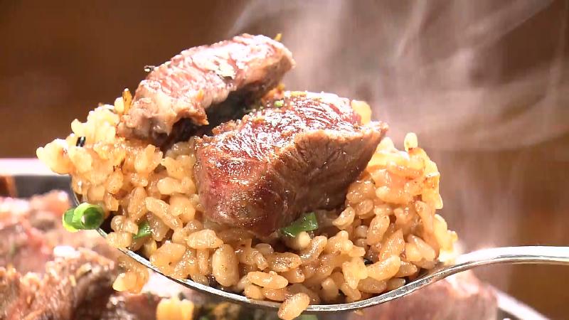 ステーキのうま味がライスに溶け出し、ガツンとニンニクが効いて、香ばしく絶品です。