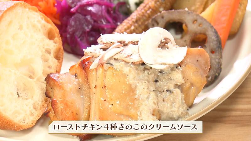 もうひとつのメイン料理は「ローストチキン4種のきのこのクリームソース」。