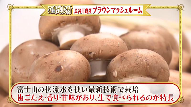 上に乗っているのは、富士市の長谷川農産のフレッシュなブラウンマッシュルームです。