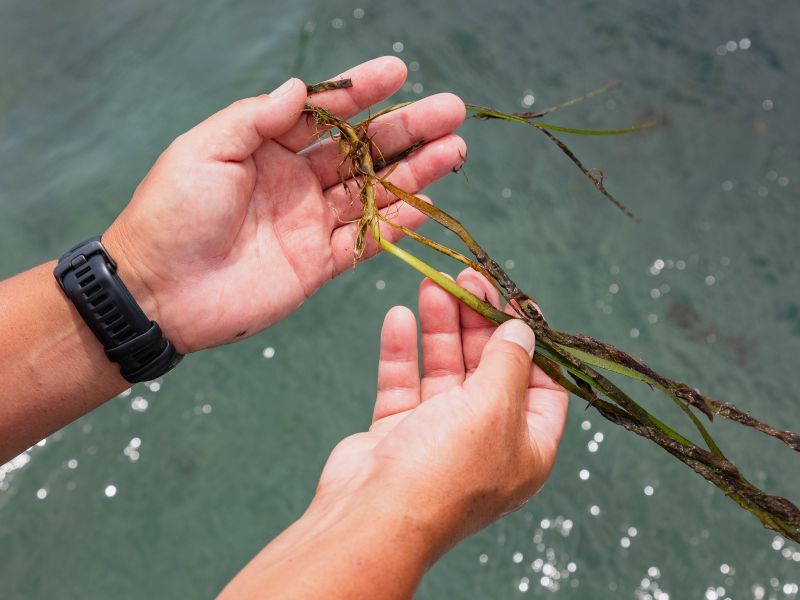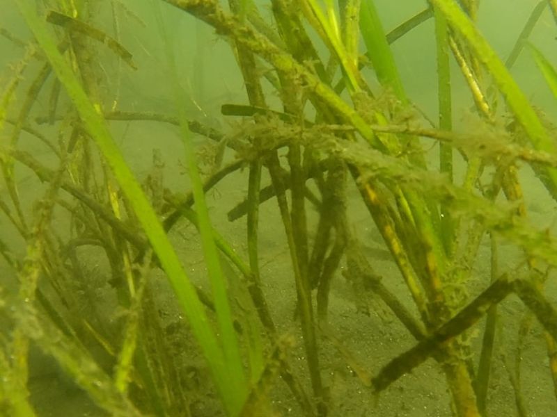 さらに、4つめのポイントでは、船の上からでもわかるほどアマモがびっしりと茂っていました。「これはすごい!」と眞瀬さんも大興奮です。