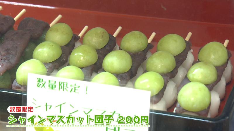 これからの時期は、シャインマスカットとあんこのハーモニーが楽しめる数量限定の「シャインマスカット団子(200円)」も登場します。