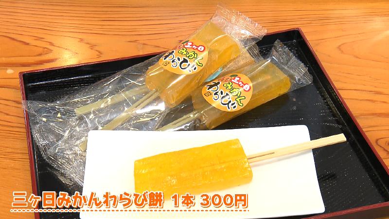 お団子以外にも、店主が子供たちを喜ばせたいと作ったのが、「三ヶ日みかんわらび餅(300円)」。