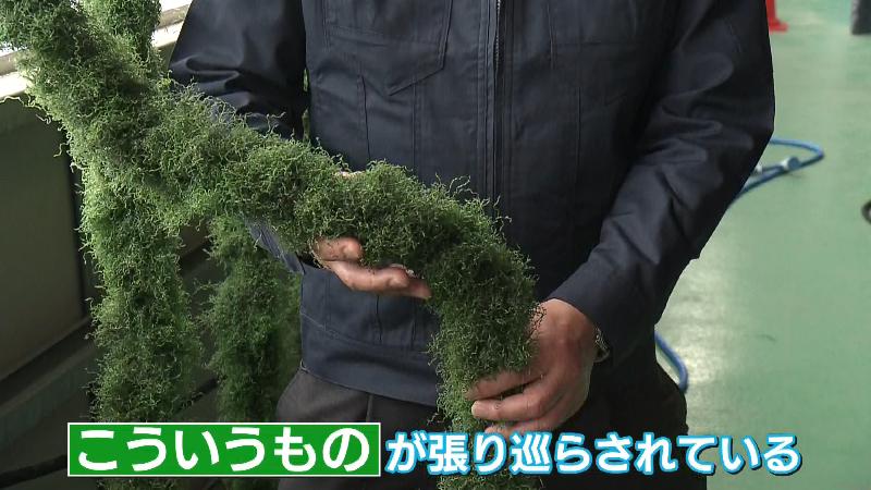 水槽の中に張り巡らされているのは謎の緑色の細長い物体。