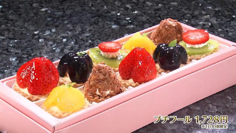 店名のように一口サイズのケーキが詰まった「プチフール(1728円)」は、1日10個限定販売です。