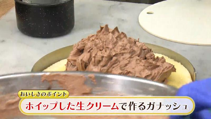 溶かしたチョコレートに冷やした生クリームを加えることで、空気をたっぷり含んだガナッシュに。