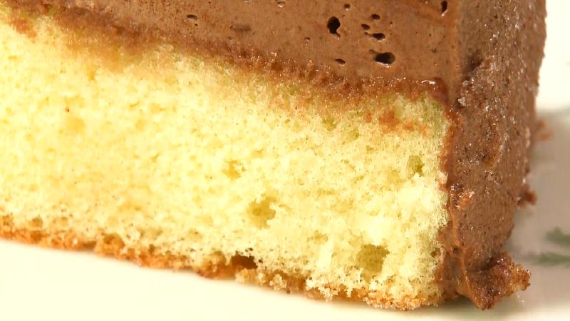 軽い小麦粉を使うことで、ふわっとした食感、そしてシロップを染み込ませることでしっとりとした食感を出しています