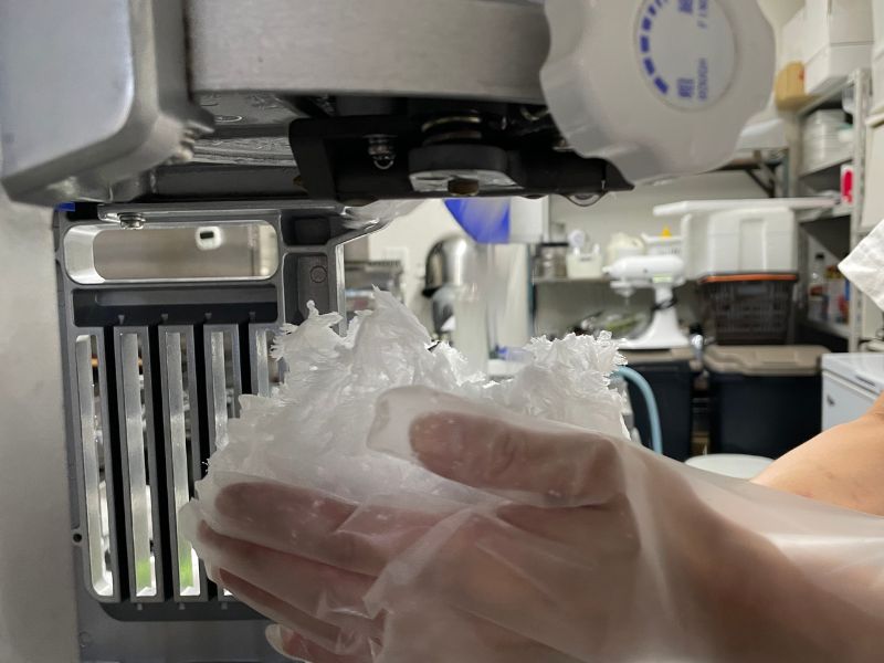 氷には、優しい口当たりが特徴の氷のブランド「浜松純氷」を使用。削る前に冷凍庫からしばらく出しておいて、頭がキーンとしないよう提供にも心配りを欠かしません。