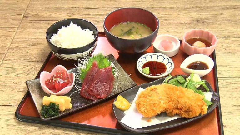 【清水区・おがわ】船から直買いできる店のマグロづくし定食 ほほ肉フライがドカンと大きい!