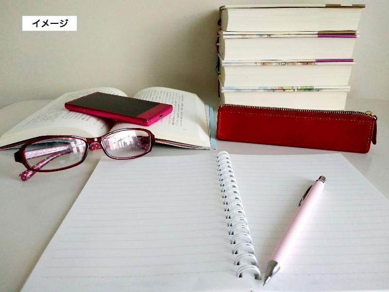 イメージ画像 ノートやメガネ、積まれた本