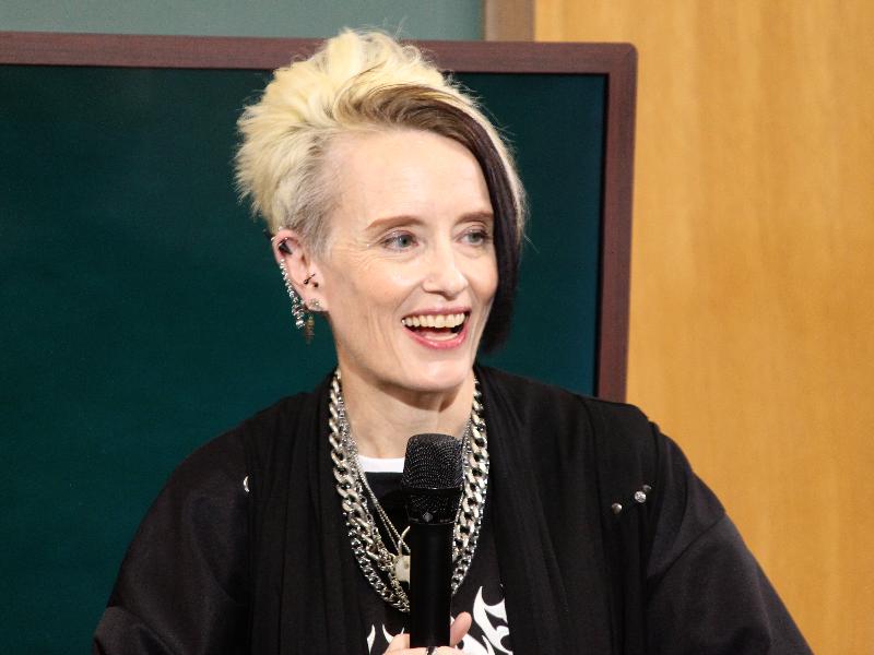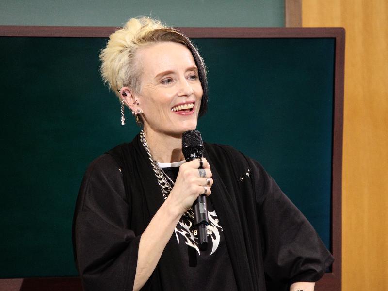 テレビ寺子屋で講義をするアン・クレシーニさん