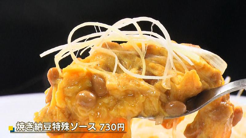納豆をしっかり感じられるオムレツに、少し甘めの特製ソースが絶妙にマッチ。