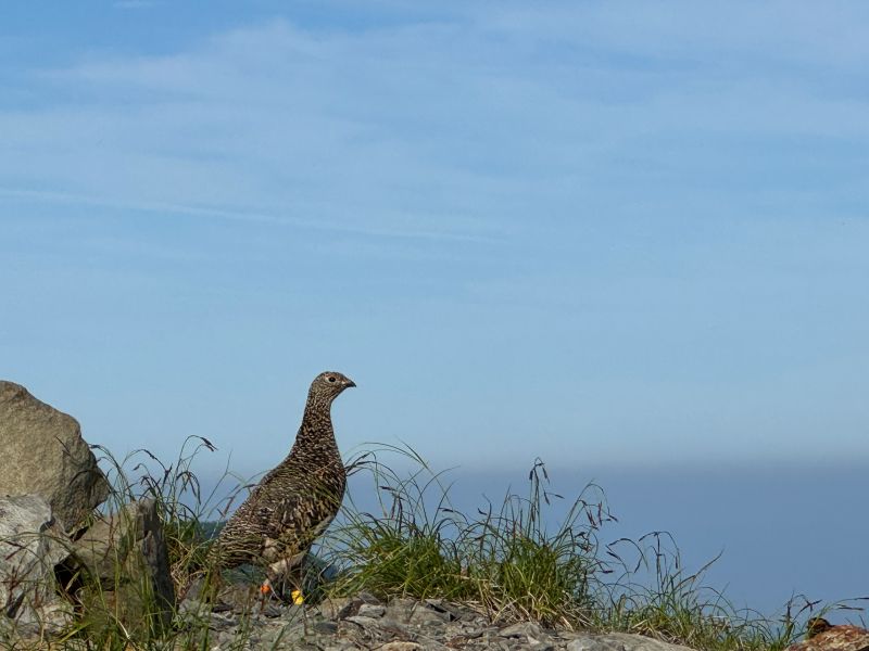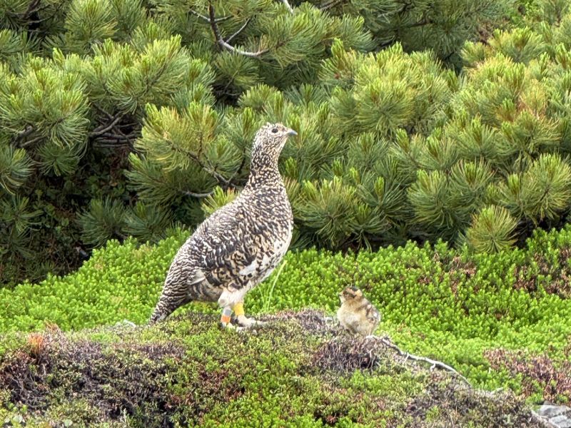 この親子が本当に一番南に暮らすライチョウかもしれないと思うと、暑い中、子育てに奮闘するお母さんライチョウを応援せずにはいられませんでした。