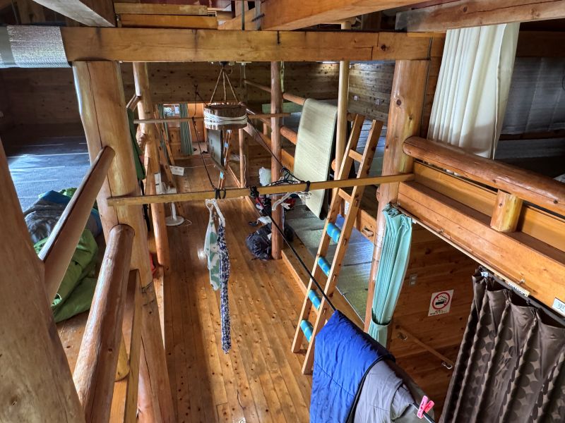 コロナ以降は食事を提供していないので素泊まりのみですが、宿泊スペースは吹き抜け2階構造の、気持ちのいい小屋です。