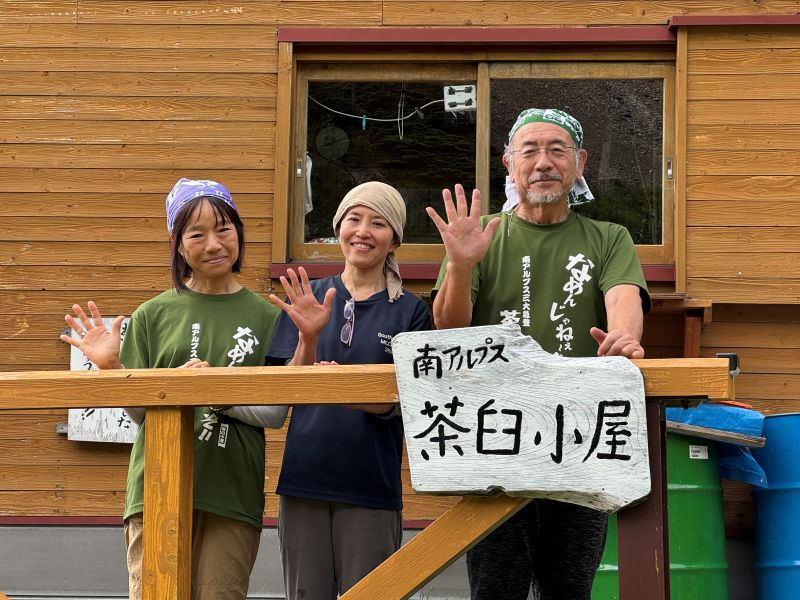 小屋開き直前だったこの日は、手伝いの人たちもいて、にぎやかな雰囲気。テント泊や冬季小屋を使う一般登山者もいました。意外にも若者グループが多く、南アルプスの静岡県域は熟練の山男たちの楽園、というイメージが少し変わります。
