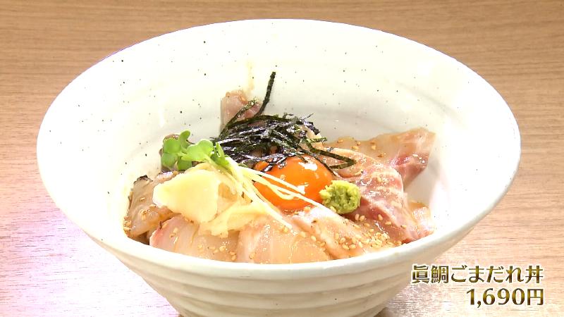 おすすめの1つ、マダイの刺身に卵の黄身がのった「眞鯛ごまだれ丼(1690円)」。自家製のごまダレと黄身をマダイに絡ませて食べてみてください。
