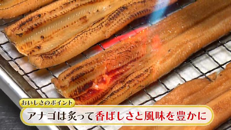 おいしさのポイントは、煮アナゴをバーナーで炙る仕上げの一手間。