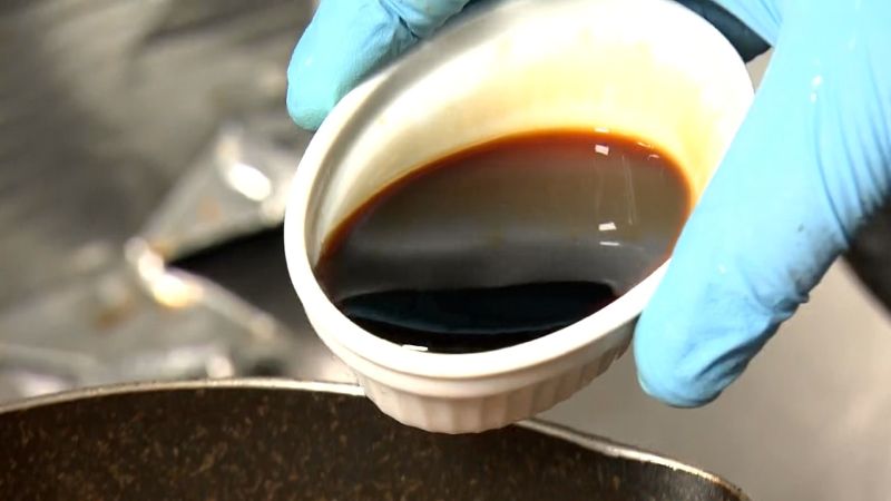 カレーの隠し味には、しょうゆベースで甘じょっぱい丸天秘伝のタレを加えています。