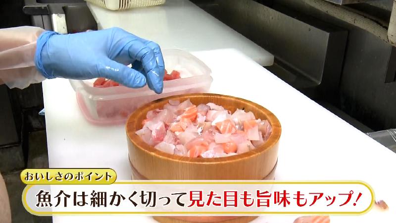 彩り鮮やかな海鮮ひつまぶしは、具材を細かく刻むことがおいしさのポイント。