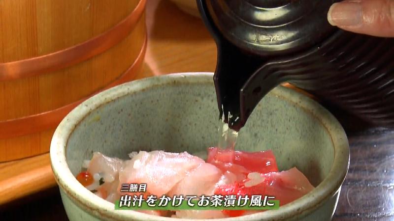 そして三膳目は、カツオ節香る熱々のだしをたっぷりとかけて食べてください。