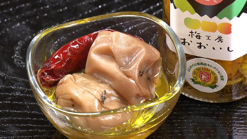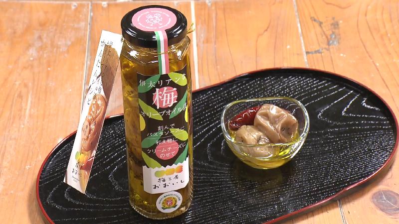 さらに大石さんは自慢のウメ干しを使った商品も開発しています。その一つが「伊太リアンな梅 オリーブオイル漬け(1620円)」。梅干しをオリーブオイルに漬け込んでいます。