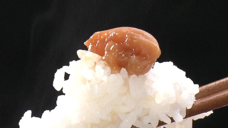 水分の含有量が南高梅と比べて少ないので、食べた瞬間に弾力性があります