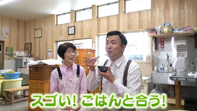 にむらあつとリポーターがウメ干しを丸々1個口に入れようとするので、大石さんから「しょっぱいですからね」とくぎを刺されました。