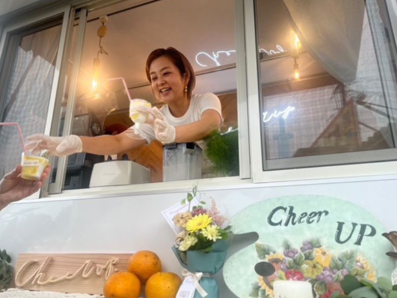 【画像】記事中に掲載していない画像も! この記事のギャラリーページへ白いキッチンカーと笑顔が目印 スムージーの「cheer up.」
