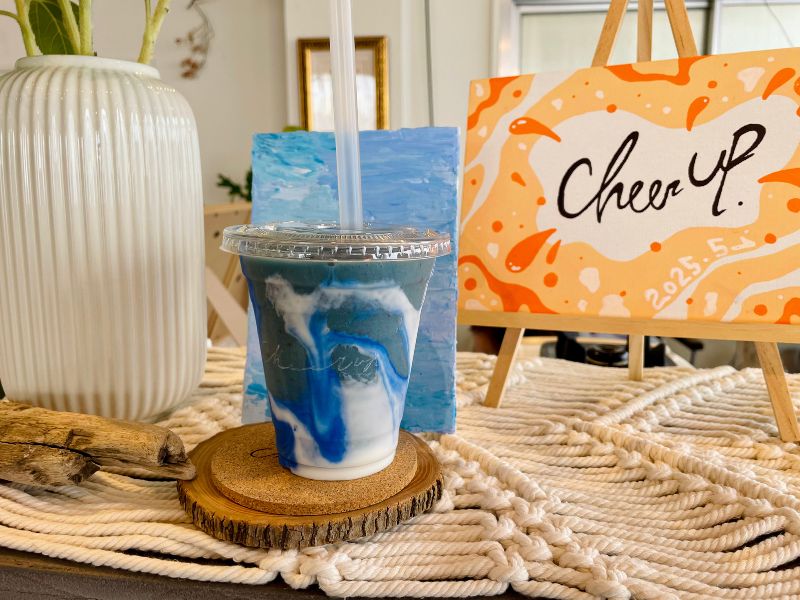 見た目のインパクトはもちろん、自然素材へのこだわりも感じられる一杯です。イベントに合わせた遊び心あるメニューも、チアーアップの魅力のひとつです。
