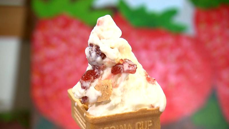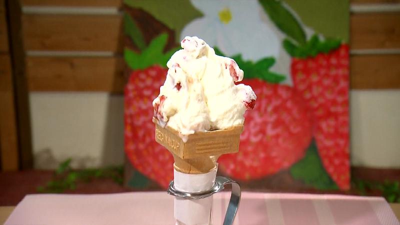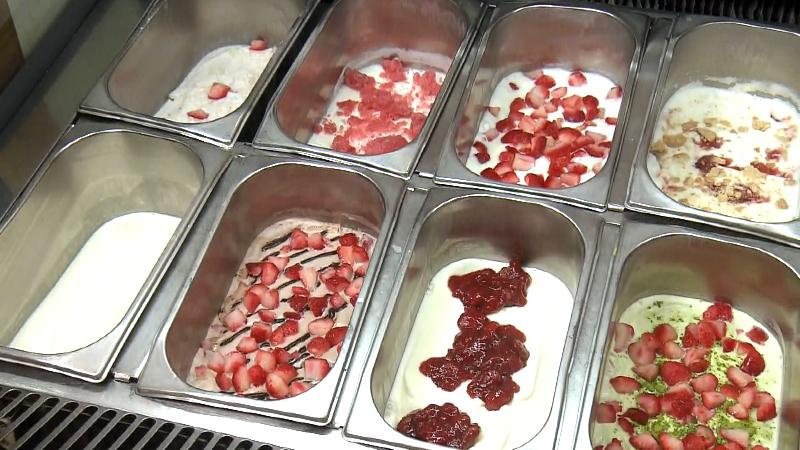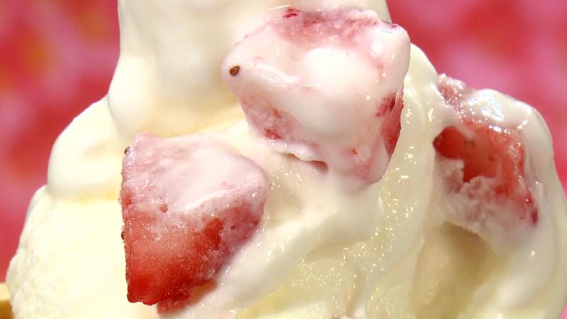 14種類中から選んだのは、砕いた冷凍イチゴを混ぜ込んだ「ストロベリークラッシュ」と、上品な味わいが特徴の「ストロベリークリームチーズ」。