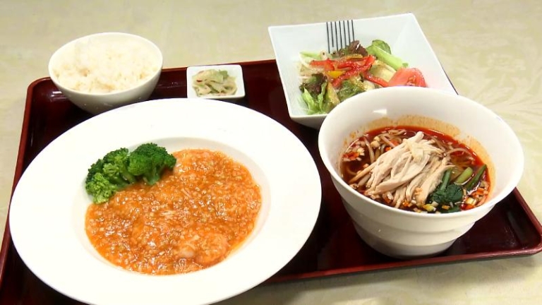 【中央区・樓蘭茶寮】組み合わせ36通り! 選べる麺ランチで「プリプリのエビチリ&酸辣麺」