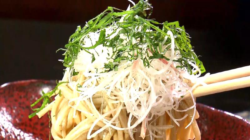 白髪ネギのシャキシャキ感にミョウガと大葉も合わさり、香りも爽やかで熱い夏にぴったり。
