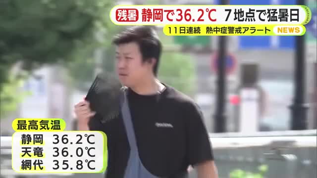 27日も県内は朝から強い日差しが照り付けて気温が上がり静岡で36.2℃、天竜で36℃、網代で35.8℃など7地点で猛暑日になりました。