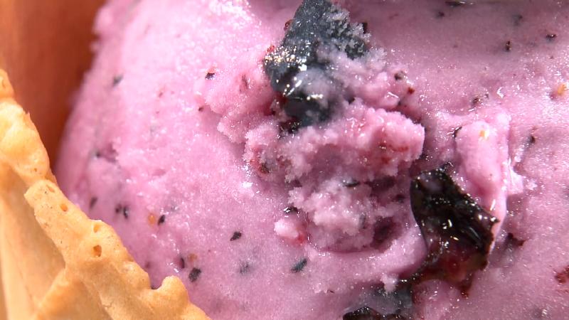 ブルーベリーを使ったジェラートの中に後入れでカットしたブルーベリーを入れているので、肉感も感じられると思います。