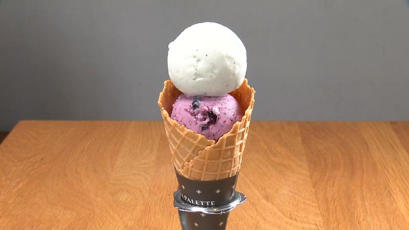 しらすヨーグルト・ブルーベリーヨーグルト ダブルレギュラー コーン(730円)