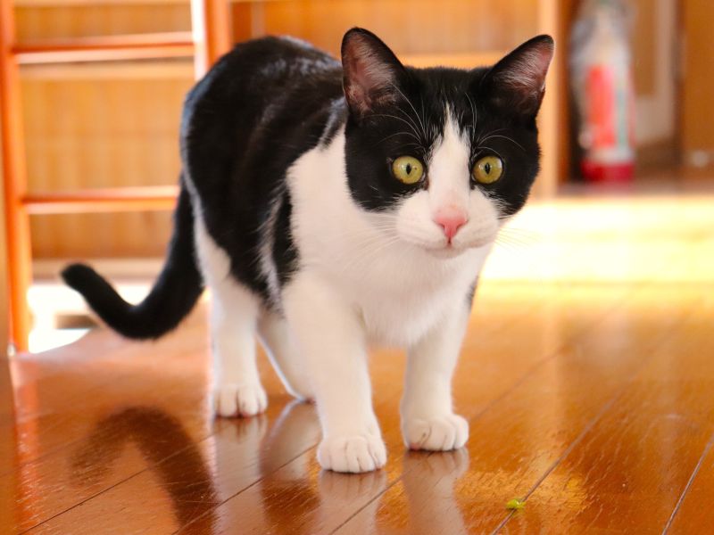 ハチワレ模様のすいかは、康泰寺の畑に8個のおいしいスイカが実った年にやってきたことから、「すいか」と名付けられました。