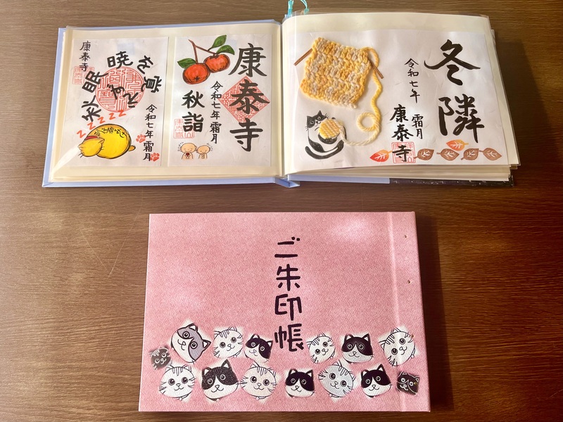康泰寺の御朱印は通常よりも大きく、立体的なものが多いので、それに合わせて作られた特注サイズです。ビニールポケットタイプで、書き置きの御朱印も収められます。