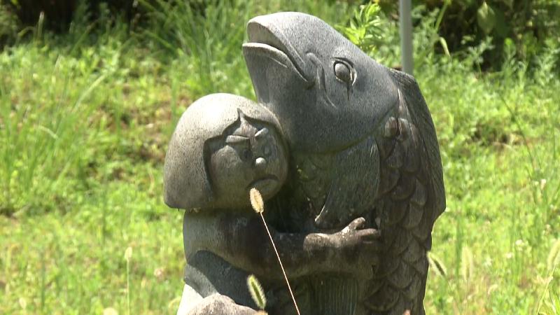 金太郎が大きなコイを捕まえた姿の像がありました。