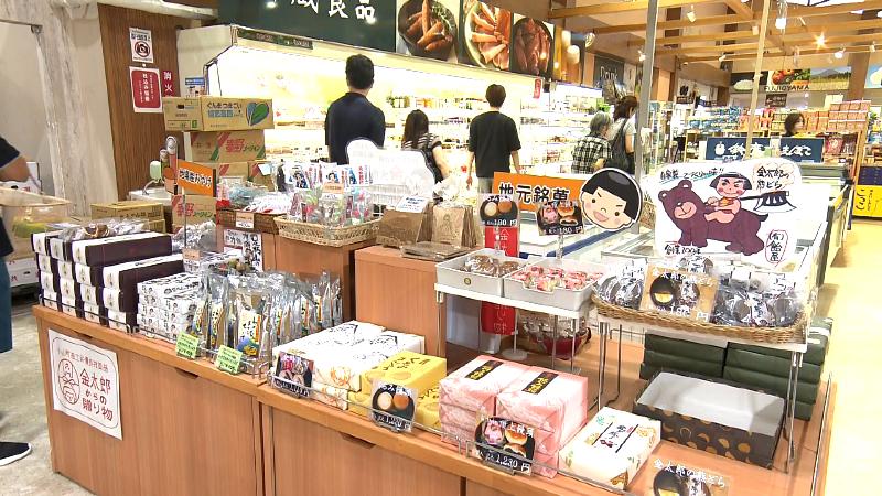 お土産売り場の棚には、ずらりと金太郎グッズが並んでいます。