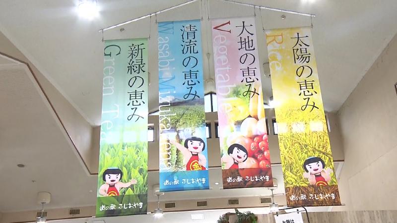 町の名産品が集まる「道の駅ふじおやま」に向かうと、まず目に飛び込んでくるのが大きな金太郎がついた看板でした。