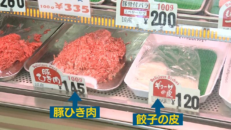 また「豚ひき肉(100g 145円)」の横には、「ギョーザの皮(120円)」も並んでいました。