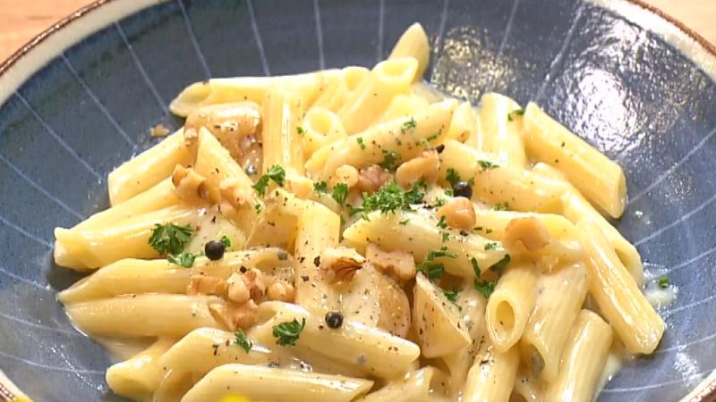 「ゴルゴンゾーラのクリームペンネ」は、チーズが濃厚でクルミのおいしさがたまりません。