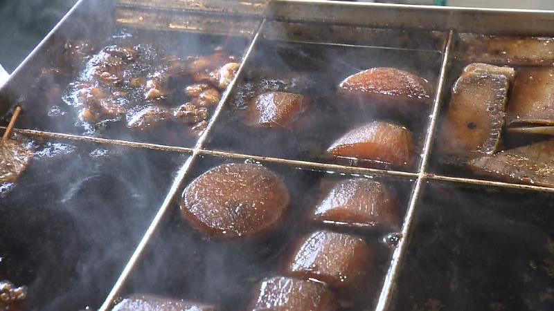 黒いだしに漬かったおでんは、じっくりと煮込まれているため、味がよく染みています。