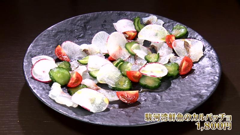 定番人気メニューは、「駿河湾鮮魚のカルパッチョ(1800円)」。