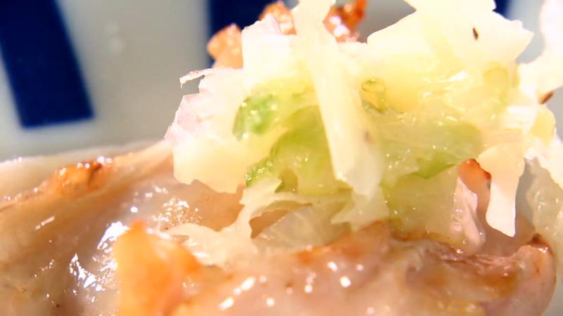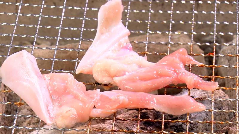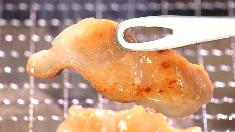 軟骨なので食感がコリコリしておいしいのと、一緒にくっついているハラミの部分が鶏肉の味も感じつつ、食感も楽しめます。ネギ塩をお肉の上に乗せて食べてみてください