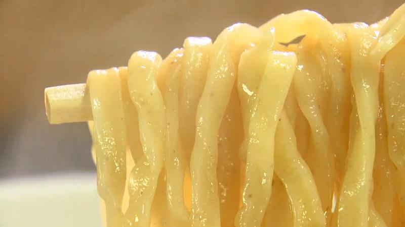 麺には、北海道産の小麦を使用しています。ちぢれ麺なのでしっかりとスープを拾い上げてくれるような麺に仕上がっています